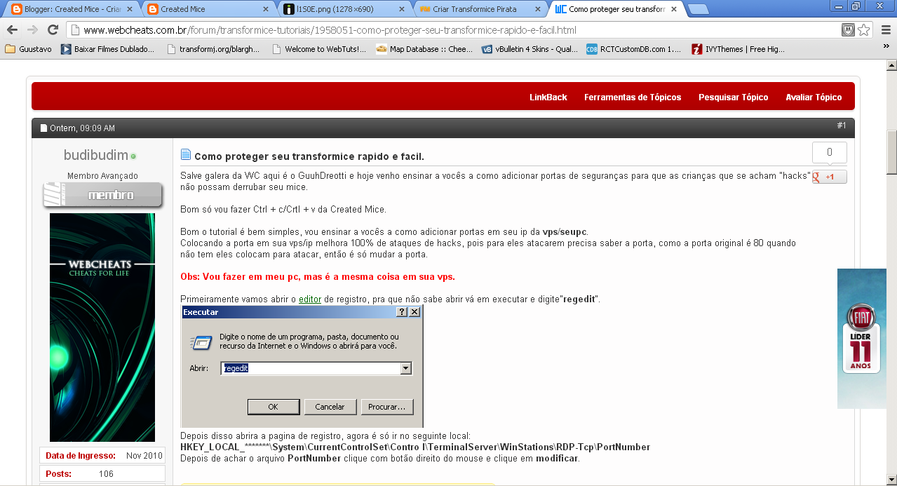 Bom Galera todos sabem que nesses tempos a fazendo merda estava plagiando post no forum famoso chamado WebCheats. Bom então revolvi posta uns de nossos tutoriais la na Web Cheats, para ver se o fdp do patrao plagiava também! Bom ele plagia siiim! Olha isso que acabei de achar